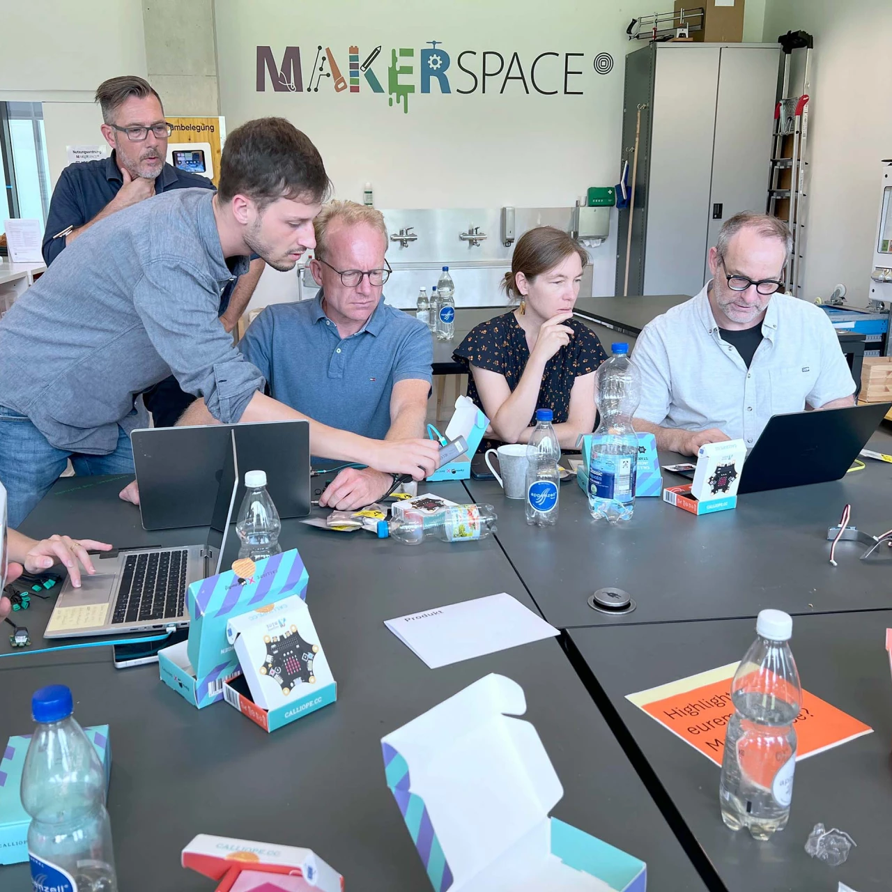 Die Weingartner Gäste legten am Nachmittag selbst Hand an und erkundeten die neuen Funktionen eines Microcontrollers für den Bildungsbereich. Dabei tauschten sie sich mit Thurgauer Lehrpersonen aus dem Netzwerk «Making und Schule» aus und erhielten einen Input über unsere Forschung in der Schulpraxis.