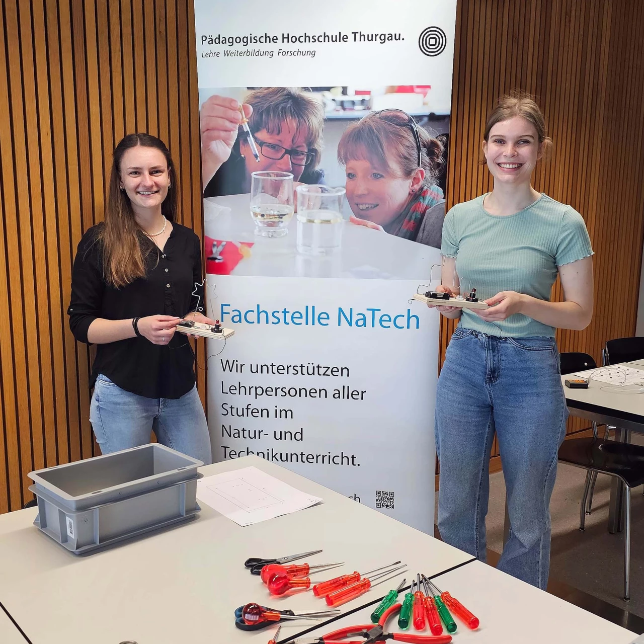 Bei den Eltern kam das Angebot der Fachstelle NaTech ebenfalls sehr gut an. Die Workshops wurden von zwei Studierenden der PHTG kompetent geleitet, was zusätzlich für Begeisterung und positive Resonanz sorgte. Die gelungene Kombination aus Wissen, Praxis und Spass machte die Veranstaltung zu einem besonderen Erlebnis für Gross und Klein.