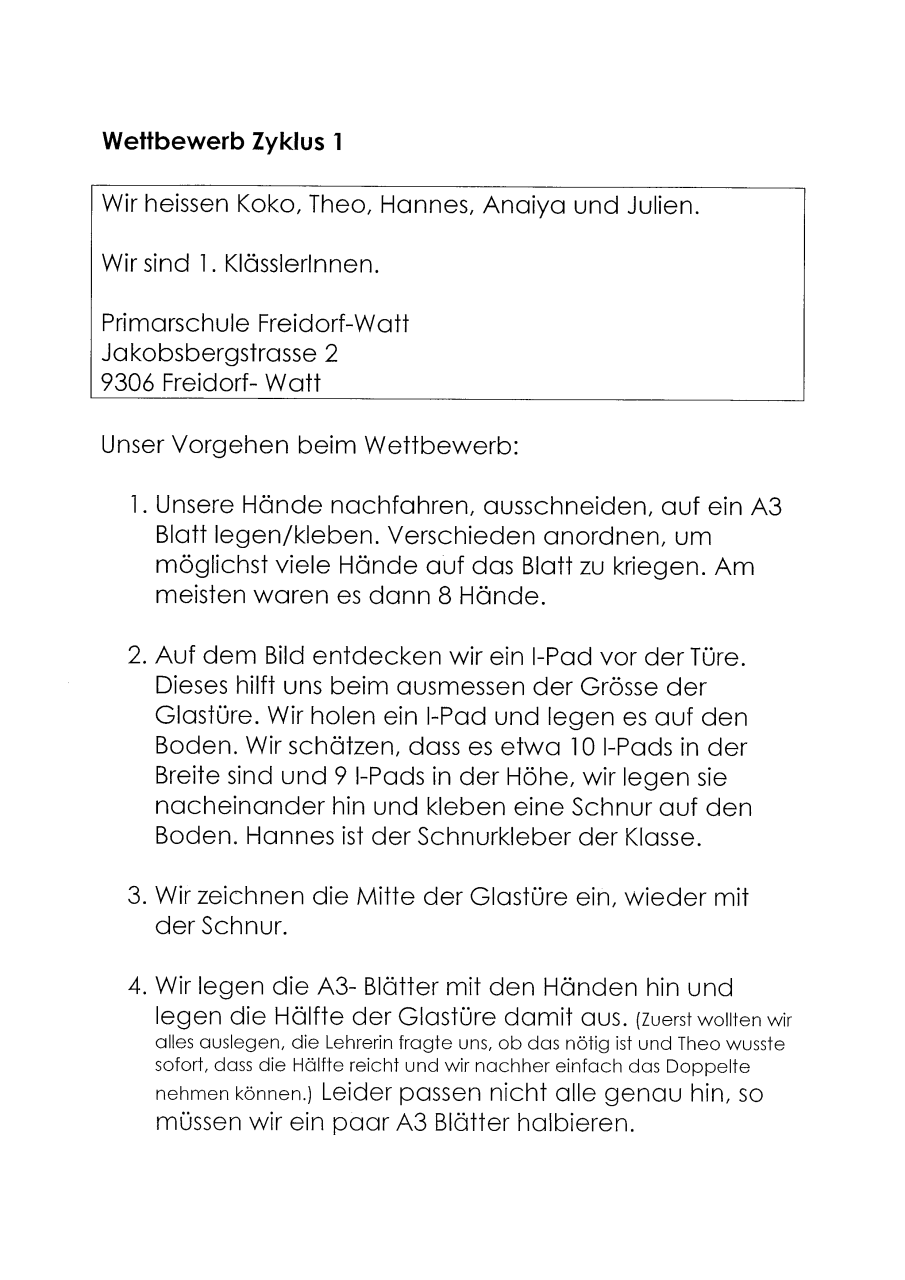 Für jeden Zyklus konzipierte das Team des Fachbereich Mathematik eine altersgerechte Aufgabenstellung, welche es zu lösen galt. Bei der Bewertung spielten die Faktoren fachliche Korrektheit, aber auch Originalität, Überzeugungskraft und Nachvollziehbarkeit der Argumentation eine zentrale Rolle.