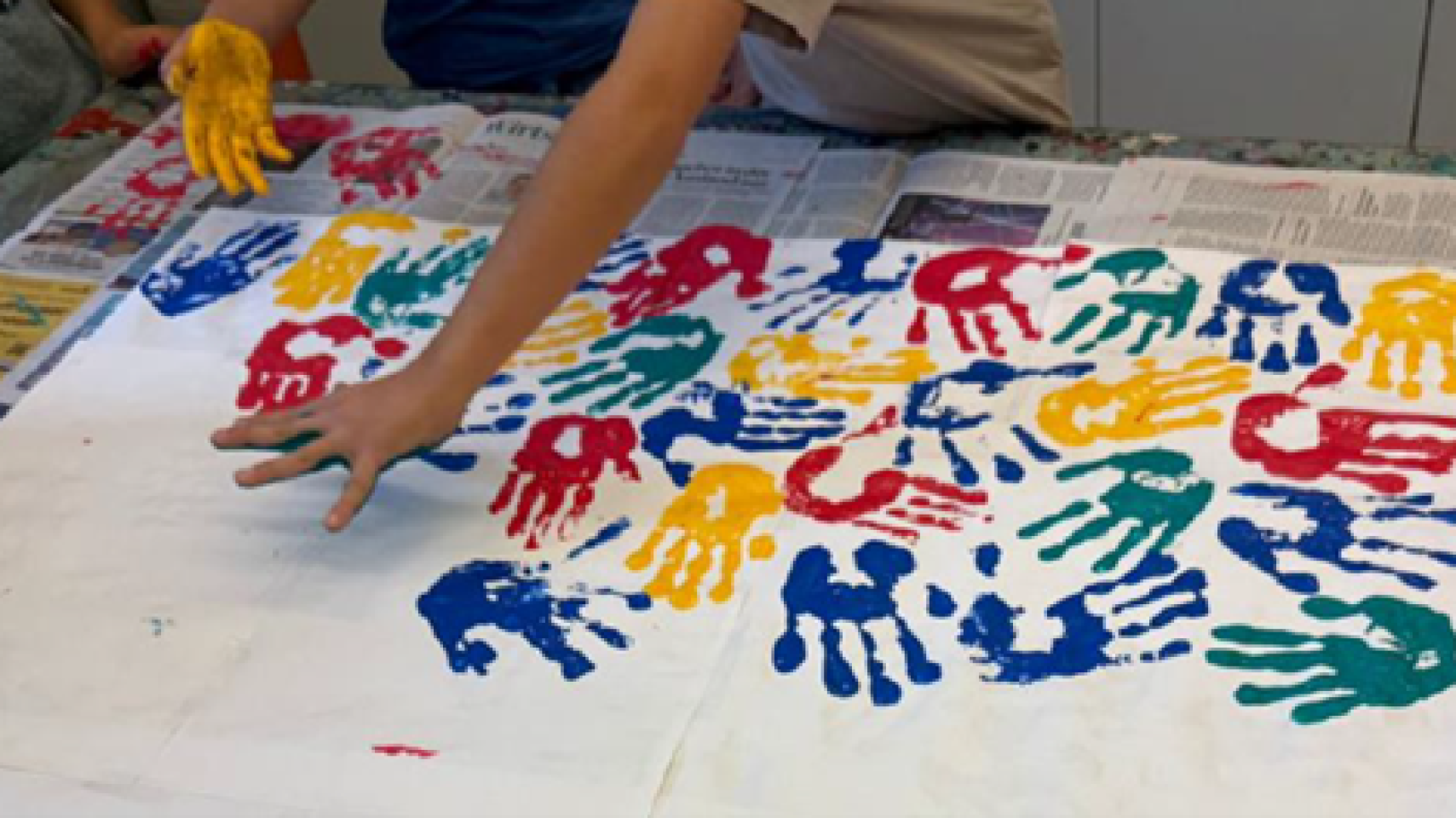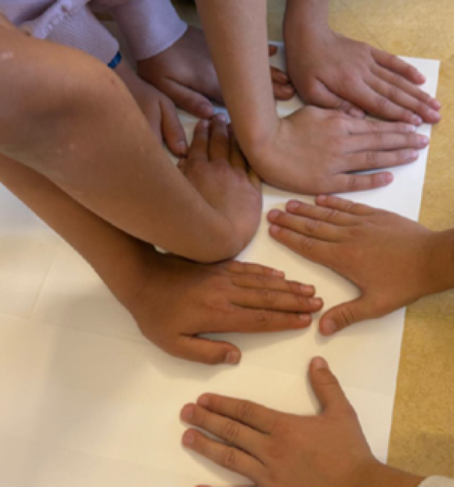 Wie viele Handabdrücke passen auf die Betonfläche?
